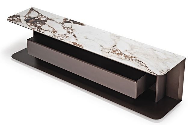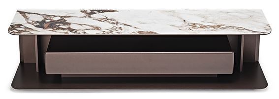 Omarica AWARD je dizajnerska TV omarica, ki jo odlikuje odsotnost zaprtih vrat s prisotnostjo velikega predala. Paolo Cattelan je tako v svojo zasnovo vključil številne odprte predelke, ki samo čakajo, da jih polepšajo predmeti. Videz je podoben sodobni TV omarici, vendar z močno dekorativno komponento. Kar najbolj odlikuje Award, je fina keramična plošča v videzu marmorja, ki jo je mogoče prilagoditi z izbiro številnih privlačnih vzorcev in odtenkov. V tej dizajnerski TV omarici sta združeni estetika in funkcionalnost. Ta elegantni kos dopolnjujejo prefinjene podrobnosti, kot so ukrivljeni sprednji robovi, nagnjen profil, ozke stranske plošče in rahlo dvignjena stran od tal. Nemogoče je, da ne bi ostali očarani.
