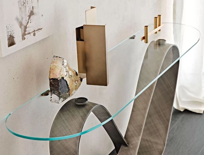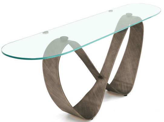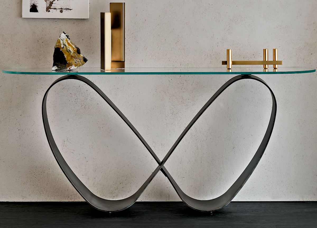 Linija Butterfly je vijugast arhitekturni projekt, ki ne more ostati neopažen. Vključuje elegantno stekleno mizo, različico s keramično ploščo in zapeljivo dizajnersko konzolo. Jekleno podnožje dizajnerske konzolne mize BUTTERFLY postane zvezda interierja s skulpturnim slogom. Steklena mizna plošča konzole je položena na podnožje in s svojim krhkim videzom ustvarja kontrast z drzno in revolucionarno kombinacijo krivulj in robov. Na voljo tudi jedilna miza Butterfly.