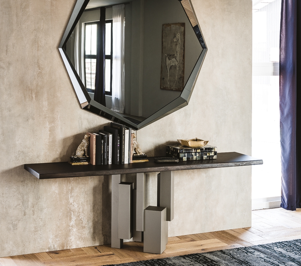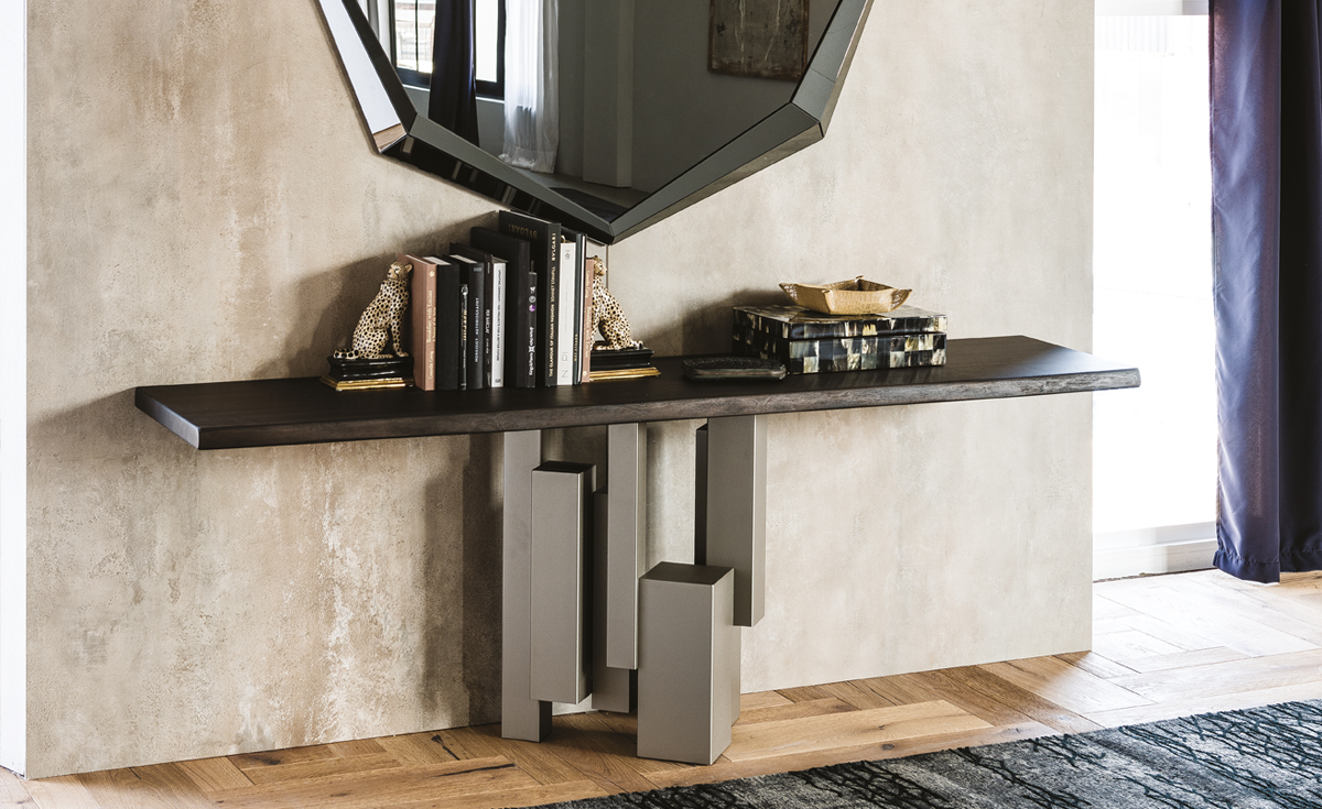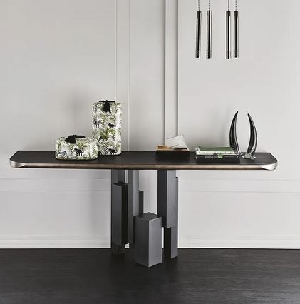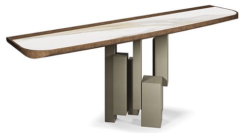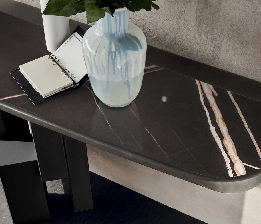 Moderna konzolna miza SKYLINE črpa navdih iz profilov metropole, ki krasijo podnožje z vitkimi linijami in tridimenzionalnimi oblikami. Barvano jeklo podnožja odbija svetlobo iz različnih zornih kotov in ustvarja učinek svetlobe, ki se spreminja glede na osvetlitev okolice. Ta konzolna miza je vrhunec sodobnega oblikovanja, ki združuje eleganco, inovacijo in funkcionalnost v enem. Skyline ni le konzolna miza, temveč umetniško delo, ki bo v vašem domu postala osrednji element. Njen edinstven dizajn in vrhunski materiali združujejo funkcionalnost s čisto lepoto. Družina Skyline vključuje tudi številne modele dizajnerskih jedilnih miz.