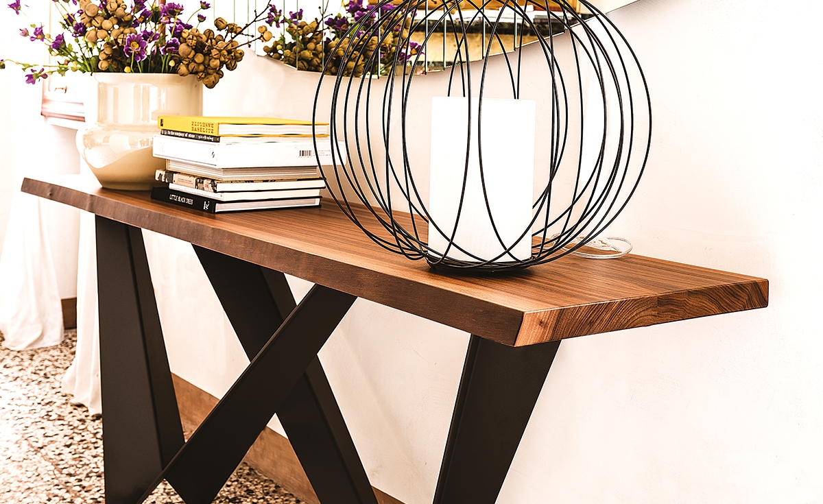 Družina konzolnih mizic WESTIN je stilska igra med ikoničnim podnožjem in prilagodljivo mizno ploščo, zaradi česar je vsaka različica izjemen sodoben kos pohištva. WESTIN in WESTIN KERAMIK PREMIUM sta prilagodljivi konzolni mizici, saj je mogoče kombinirati osnovno obdelavo z lesenimi, keramičnimi ali steklenimi miznimi ploščami.