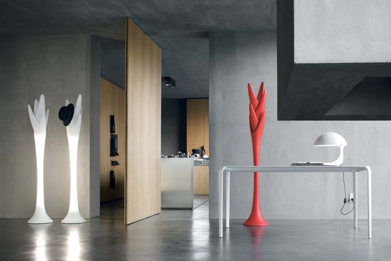 Garderobno stojalo iz umetne mase v različnih barvah in višinah. Na voljo tudi z notranjo osvetlitvijo.