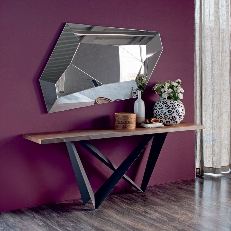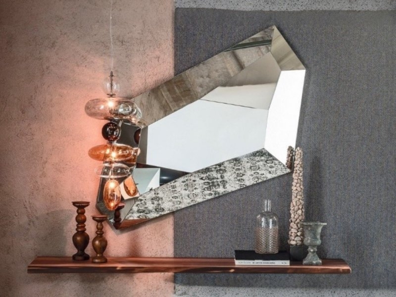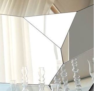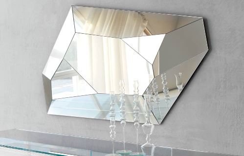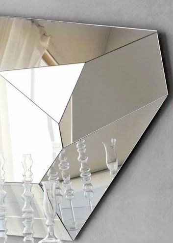 DIAMOND je moderno stensko ogledalo s popolnoma zrcalnim okvirjem. Njegova oglata oblika in tridimenzionalni okvir spominjata na obliko diamanta. Okvir in notranjost tega sugestivnega oblikovalskega ogledala sta sestavljena iz zrcalnih delov, postavljenih drug ob drugem, da ustvarijo igro svetlobe in odsevov, ki dajejo prostoru nekonvencionalen in sodoben videz. Kot dragi kamen tudi ogledalo Diamond odraža svojo okolico pod različnimi koti.