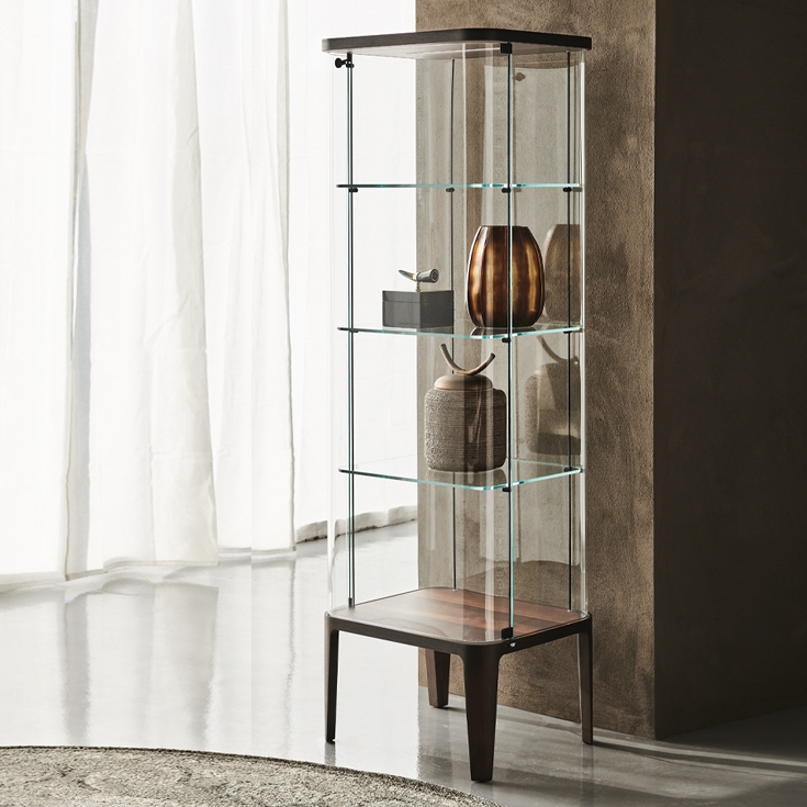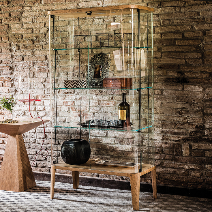 Sodobna vitrina za dnevno sobo CHANTAL je dragocen in eleganten dodatek k opremljanju, izdelan predvsem iz ekstra prozornega kaljenega stekla. Nežna prozorna vrata, stranice in police steklene vitrine ustvarjajo prijeten kontrast z voluminoznim zgornjim in spodnjim delom, ki sta oba izdelana iz izbranega lesa. Ta moderna vitrina je na voljo v dveh različicah z enimi ali dvoje steklenimi vrati. Obe sta okrašeni z notranjo LED lučko, ki poudarja predmete, shranjene v tej elegantni sodobni vitrini.
