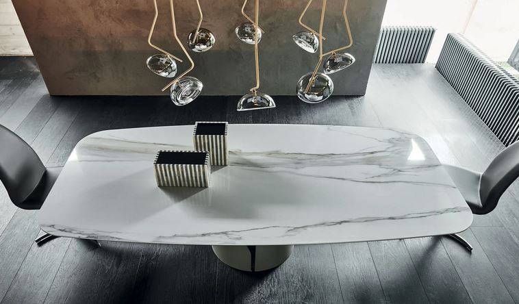 Moderne mize družine GIANO dajejo jedilnici sodoben in minimalističen slog. Odločen stil s futurnističnim pridihom naredi to oblikovalsko mizo kot unikaten kos pohištva.