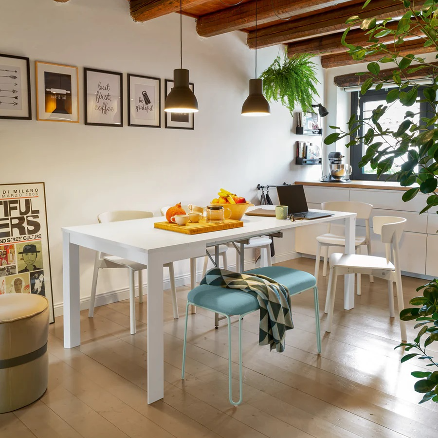 EMINENCE CONSOLLE je super-raztegljiva konzolna miza, ki izhaja iz priznanega modela Eminence. Leseno podnožje daje pridih prefinjenosti in topline, medtem ko teleskopska vodila iz aluminija zagotavljajo gladko in enostavno podaljševanje mizne plošče. Ena od značilnih lastnosti te konzolne mize je zložljiva sredinska noga, ki zagotavlja stabilnost, ko je miza popolnoma raztegnjena. Ta domiselna podrobnost zagotavlja varno in zanesljivo površino za delo ali prosti čas. Poleg tega ima konzolna miza pet podaljškov po 50 centimetrov, ki nudijo fleksibilnost in prilagodljivost različnim prostorskim potrebam. Na voljo tudi raztegljiva konzolna miza Artic s kovinskim podnožjem.