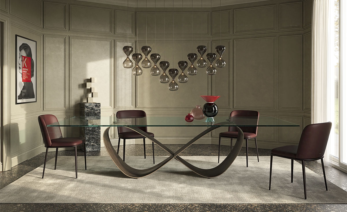 Njena steklena plošča, ki je postavljena na to izjemno podnožje, pooseblja subtilnost in lahkotnost. S svojim krhkim videzom ustvarja kontrast z trdnim kovinskim podnožjem in oblikuje kos pohištva, ki presega pričakovanja.In za tiste, ki iščete nekaj resnično izjemnega, je na voljo različica BUTTERFLY KERAMIK. Krasijo jo keramične mizne plošče Marmi v videzu marmorja, ki so na voljo v več ekskluzivnih odtenkih. To pomeni, da lahko izberete kombinacijo, ki popolnoma ustreza vašemu okusu in notranji opremi. Miza Butterfly ni le miza - je umetnina, ki dviguje estetske standarde v vašem domu. Privoščite si to izjemno izdelano mizo in oplemenitite svoj prostor z naravo in sodobno umetnostjo v popolnem ravnovesju.