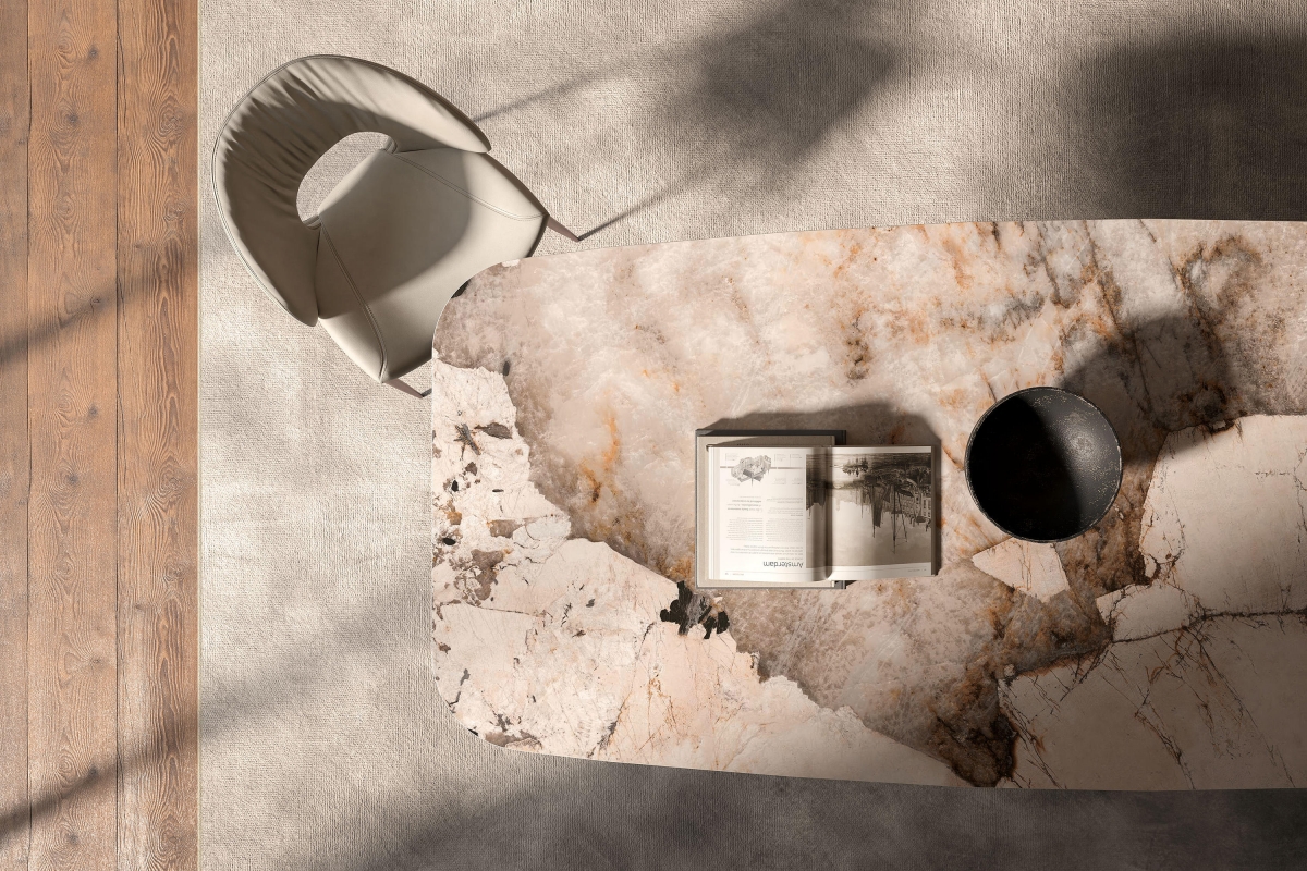 Družina miz PAPEL je bila zasnovana kot mizna skulptura, ki uprizarja glamurozno predstavo in oživi vrhunsko sodobno jedilnico. Kot pravi oblikovalka Margherita Fanti, je miza Papel raziskovanje tekočih oblik in mehkih, brezhibnih krivulj. Navdih črpa iz narave, natančneje iz ene od njenih številnih popolnih lastnosti »valovov". Njeno vijugasto podnožje je bilo premeteno zasnovano tako, da se vizualno spreminja glede na položaj, iz katerega ga gledate. Polni in prazni valji optično zamenjajo mesta s spreminjajočo se svetlobo in senco, ko gledate to dizajnersko mizo iz različnih zornih kotov. Zaradi tega so modeli Papel impozantni, še posebej, če se odločite, da boste podnožje izbrali s končno obdelavo ročnega brušenja izurjenih obrtnikov. Ukrivljeno kovinsko podnožje je izdelano iz enega kosa, kar prispeva k kakovosti te moderne jedilne mize.