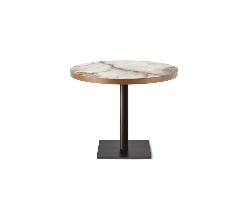 Kvadratno, kovinsko podnožje Ribot Keramik mize zagotavlja trdnost in stabilnost ter dopolnjuje sodoben dizajn. Okrogla mizna plošča v keramiki izbranih vzorcev in barv izraža eleganco in omogoča udobno postrežbo ter druženje. Vsaka miza ima s spretnostjo in natančnostjo ročno brušen kovinski rob mizne plošče, kar zagotavlja vrhunsko kakovost in detajle.