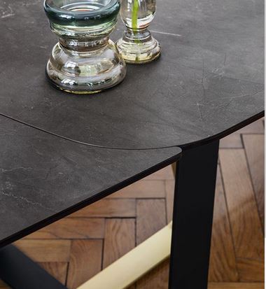 Miza SUNSHINE je na voljo kot fiksna in raztegljiva jedilna miza, idealna za vse bivalne prostore in se ponaša z elegantno silhueto. Kovinsko podnožje je nameščeno na izravnalni nogi. Podnožje je tako sestavljeno iz elementa v obliki črke »U« in elementa v obliki črke »L«, katera sta skupaj pritrjena s skritimi vijaki. Njeno lepoto je mogoče poudariti tudi z dvobarvnima različicama dveh elementov podnožja, katera sestavljata osnovo, kar ji daje še izjemno eleganten videz.