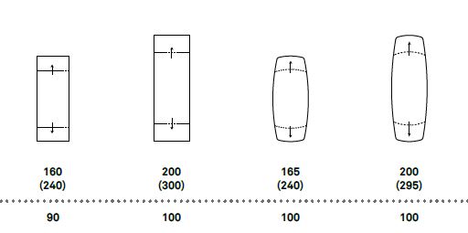 * mizna plošča v pravokotni obliki in pravokotna mizna plošča z zaobljenimi robovi