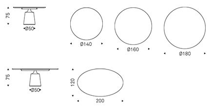 Eden najbolj priljubljenih modelov okroglih jedilnih miz Cattelan Italia je družina YODA. Sestavljena iz več različic, med katerimi lahko izbirate, da prilagodite svojo dizajnersko jedilnico. Osnova je sestavljena iz osrednjega prisekanega stožca, ki predstavlja podnožje. Njen robusten videz je omehčan s kovinskim zaključkom in povezavo z ozkim, poglobljenim zgornjim delom, kot da bi spominjal na dolg, eleganten vrat, ki podpira mizno ploščo. Njihova funkcionalnost in videz se odlično prilagajata sodobnim kavarnam, restavracijam ali domovom.