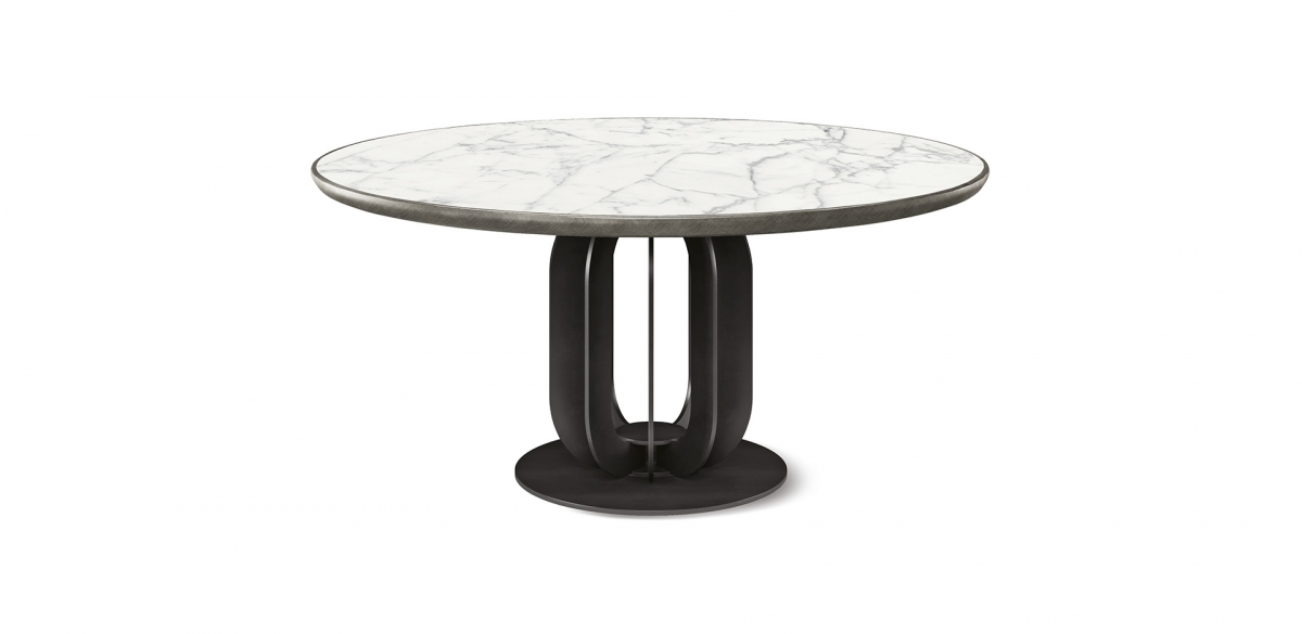 SOHO KERAMIK pooseblja nežno eleganco. Njeno unikatno oblikovano kovinsko podnožje daje jedilni mizi stabilnost in moč, medtem ko mizna plošča iz čudovite keramike Marmi, ponuja vizualno bogastvo. Soho jedilna miza vabi k raziskovanju detajlov in se ponaša s prefinjenimi odtenki keramike. SOHO KERAMIK PREMIUM je vrhunec stilske dovršenosti z brušenim robom v masivnem lesu, ki objema keramično ploščo. Okrogla keramična miza z debelim ročno brušenim robom v dveh barvah daje mizi dodatni masiven in trden videz. Rob je na voljo v brušeni bronasti ali srebrni barvi. SOHO WOOD ponuja bolj klasično, a še vedno čudovito različico te mize. Izdelana je iz plemenitega lesenega furnirja. Lesena, okrogla miza izžareva toplino in lepoto narave. Je odlična izbira za tiste, ki cenijo toplino lesa in brezčasno obliko. SOHO KERAMIK WOOD je popolna kombinacija lesa in keramike. Model okrogle jedilne mize Soho Keramik Wood združuje najboljše iz obeh svetov. Izjemna kombinacija lesa in izvirnega keramičnega vložka v sredini mizne plošče. Ta miza očara s svojo edinstveno obliko in se ponaša z estetsko harmonijo med naravnim lesom in neuničljivo keramiko.