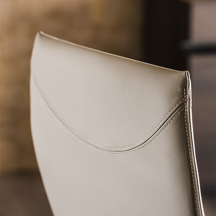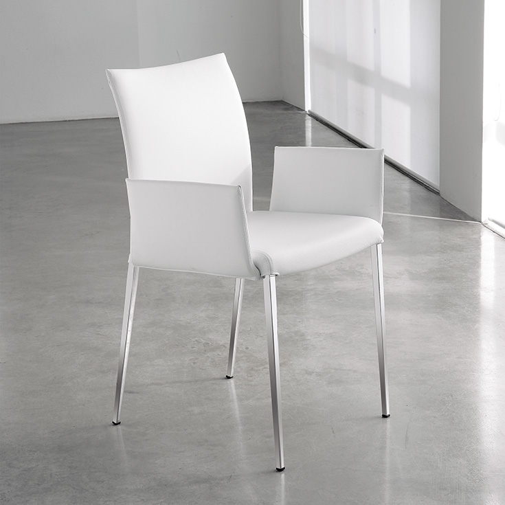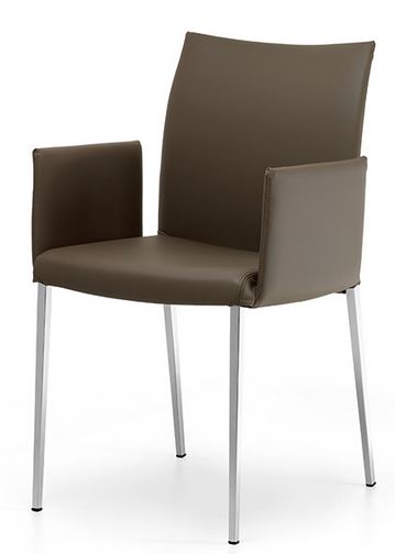 Sedeži in naslonjala so v celoti oblazinjeni v izbranem materialu. izbranem materialu. izbranem materialu. Ta moderni jedilniški stol je na voljo tudi v različici z visokim naslonjalom za dodatno podporo sedalne drže in v različici z nasloni za roke, kar predstavlja pravi kos sodobnega oblikovanja.
