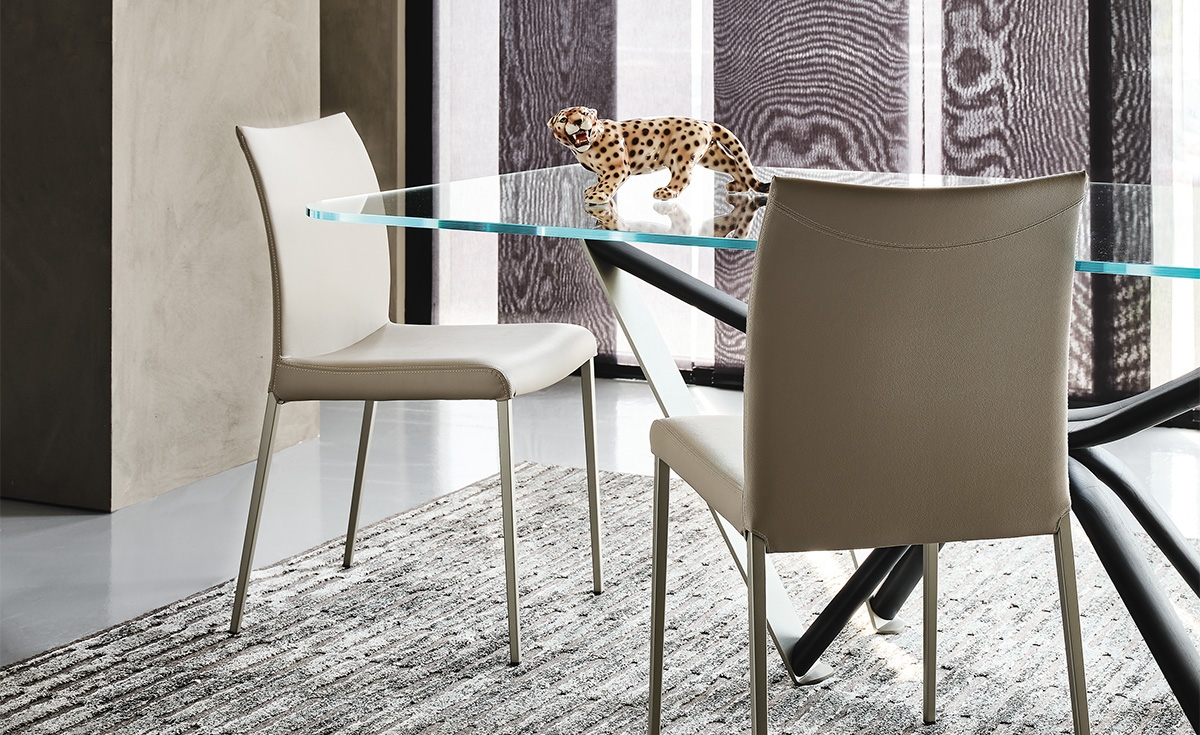 Družina jedilnih stolov ANNA vključuje več različic tega minimalističnega modernega stola. Udobje kolekcije dizajnerskih stolov Anna je v središču pozornosti.