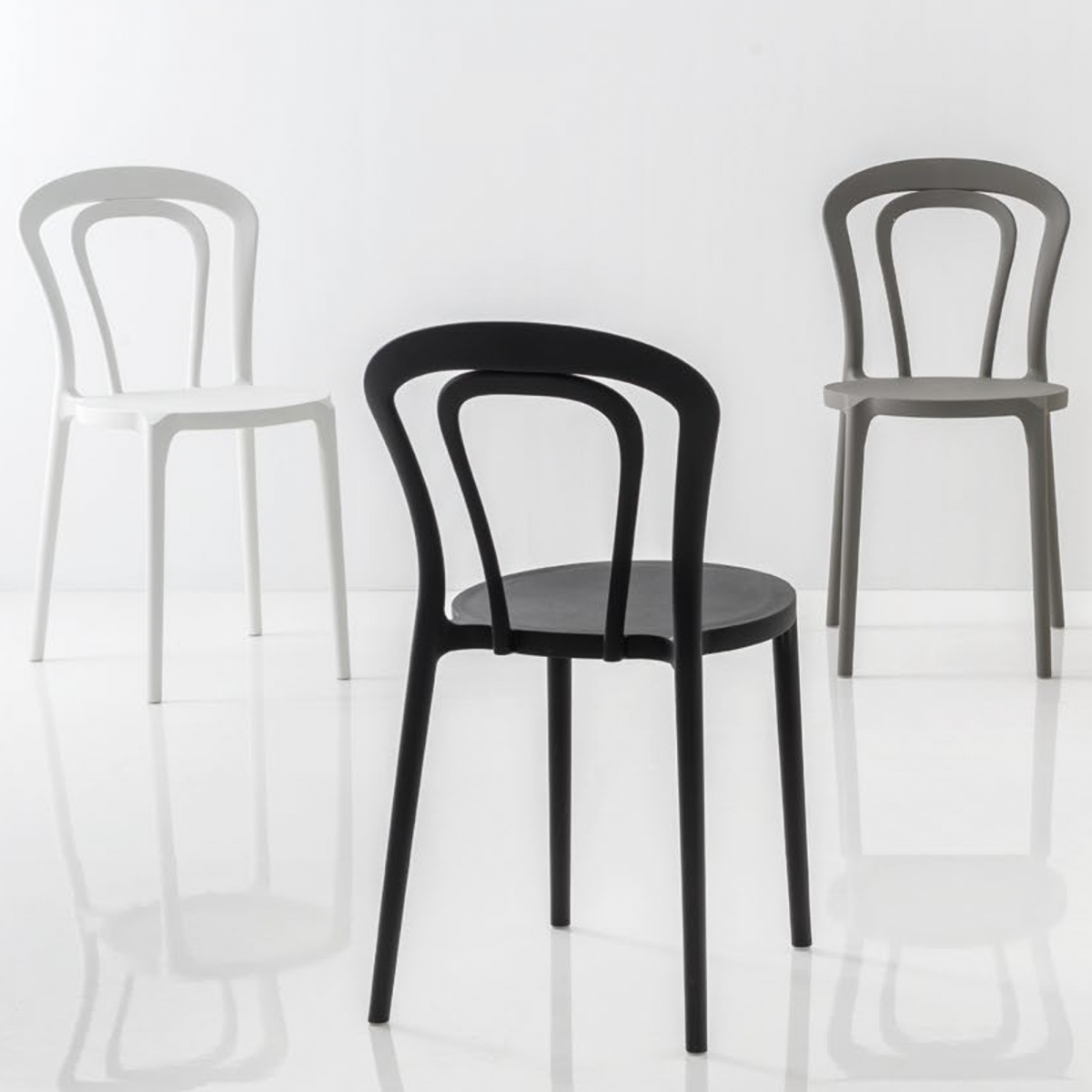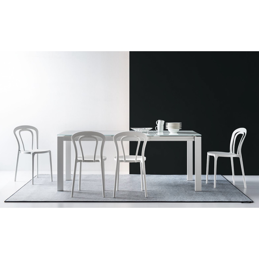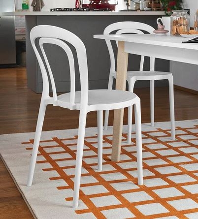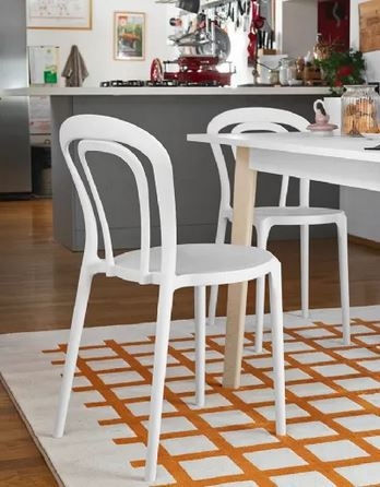 Uporabljeni inovativni materiali in dizajn, ki spominja na enega najbolj klasičnih stolov doslej, naredijo jedilni stol CAFFE idealen za izpolnitev domačega interierja ali prostorov, ki so odprti za javnost, tako v notranjih kot zunanjih prostorih, poleg tega pa ga je mogoče tudi zložiti v višino. Monoblok jedilni stol CAFFE je iz polipropilena, izdelan s tehnologijo zračnega brizganja -Airmoulding, ki zagotavlja lahkotnost in hkrati trdnost.