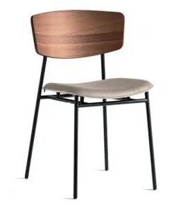 Leseni stol FIFTIES uvaja dodatno kombinacijo mešanice materialov z lesenim naslonjalom iz črnega jesena ali oreha Canaletto, kovinskim okvirjem in oblazinjenim sedežem. V skladu s trendi petdesetih let, je Fifties stol z značilno funkcionalno obliko, ki združuje kovinski okvir s klasičnim sediščem. Štiri noge iz kovinskih cevi mu dodajo lahkotnost in eleganco, ter podpirajo oblazinjeno sedišče in hrbtno naslonjalo iz lesenega furnirja.