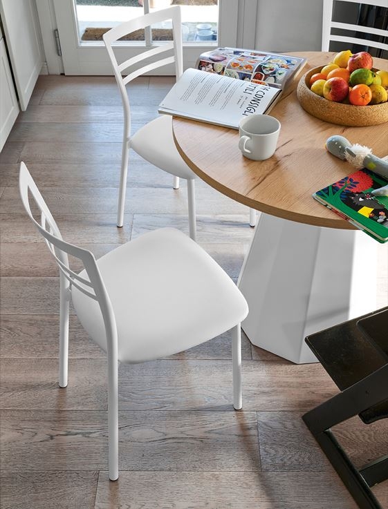 Jedilni stol GO! ima klasičen in eleganten dizajn, z rahlo ukrivljenim polvisokim naslonjalom, ki zagotavlja udobno oporo. Njegova kovinska konstrukcija je lahka in jo je možno izbirati v več barvah. Kot posebnost jedilnega stola Go! je možnost izbire sedišča v materialu, ki daje videz antracidnega karbona ali aluminijasto sive barve, kar mu daje unikaten izgled. Materiala sta narejena iz poliestra, kar pomeni, da sta popolnoma enostavna za vzdrževanje. Sedišče lahko izberete tudi v kakovostnem tehničnem materialu, ali v masivnem lesu. Na voljo tudi barski stol GO!.