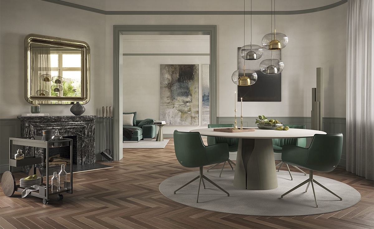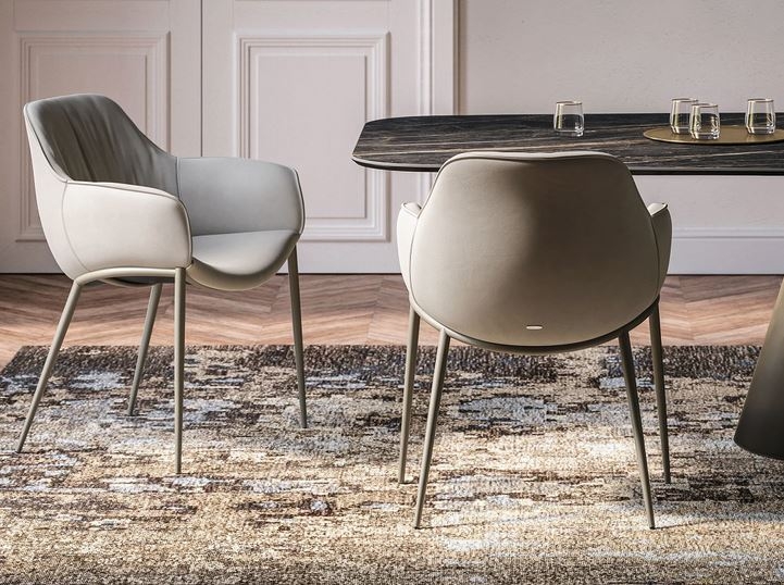 Zaobljene oblike v družini foteljev SCARLETT zagotavljajo naravno eleganco, zaradi katere so primerni za opremljanje udobne in prijetne dizajnerske jedilnice. Mehke gube, ki krasijo notranjo stran naslonjala, so v nasprotju z gladkim, napetim oblazinjenjem okvirja, ki se ovija okoli telesa. Naslonjalo, ki je višje od običajnega za jedilniške fotelje, je zasnovano tako, da zagotavlja večjo podporo hrbtu in maksimalno udobje v daljšem časovnem, sedalnem obdobju. Izraziti šivi orisujejo obliko celotnega sedeža in omogočajo, da so naslonjala za roke rahlo obrnjena navzven in se razpirajo kot nežni cvetni listi. Družina jedilnih stolov Scarlett zagotavlja popolno kombinacijo elegance in praktičnosti ter izraznosti in diskretnosti.