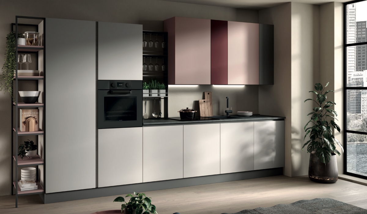 York je popoln izraz urbanega stila, ki se zmehča in ovije v toplino, ustvarjajoč trendovski in prijeten prostor za sodoben dom. Z živahno in kreativno osebnostjo melaminskih front v mat, sijaj in imitacijah lesa ponuja neskončne možnosti barvnih kombinacij – od umirjene bele in salvia zelene do drznih kovinskih odtenkov brona in zlata.