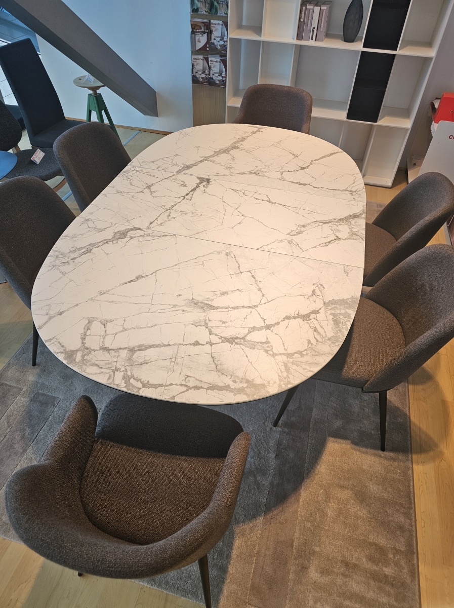 Razstavni eksponat jedilna miza Elson je na voljo v salonu pohištva Maros v Celju, Aškerčeva 14.