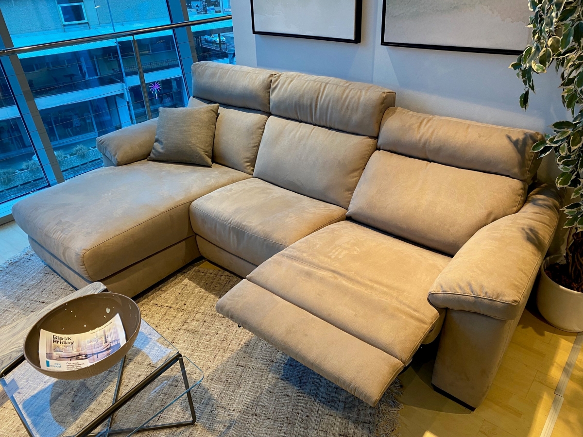 Cena velja za razstavni eksponat sedežne garniture Estremo, ki je na voljo v salonu pohištva Maros v Celju, Aškerčeva 14.