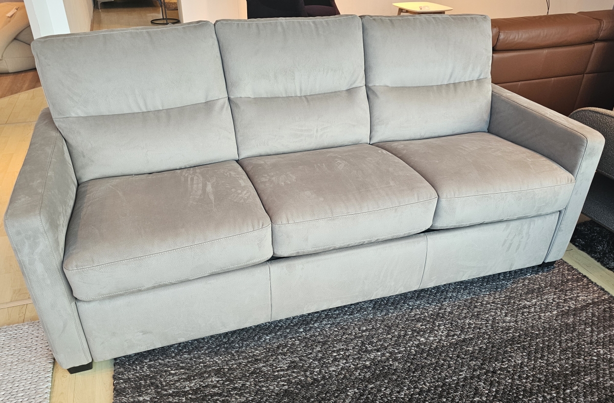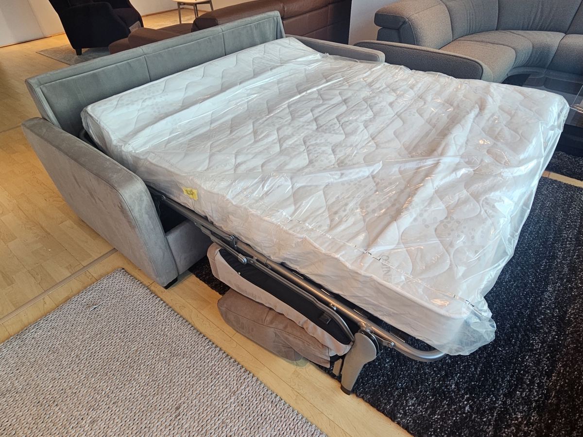 ODPRODAJA SE: Trosed sedežne garniture Garbo v tkanini sive barve. Trosed ima vključeno dodatno ležišče, v dimenzijah 160x195 cm.