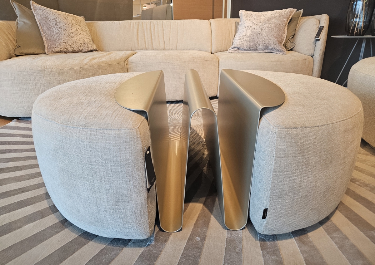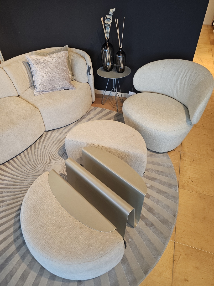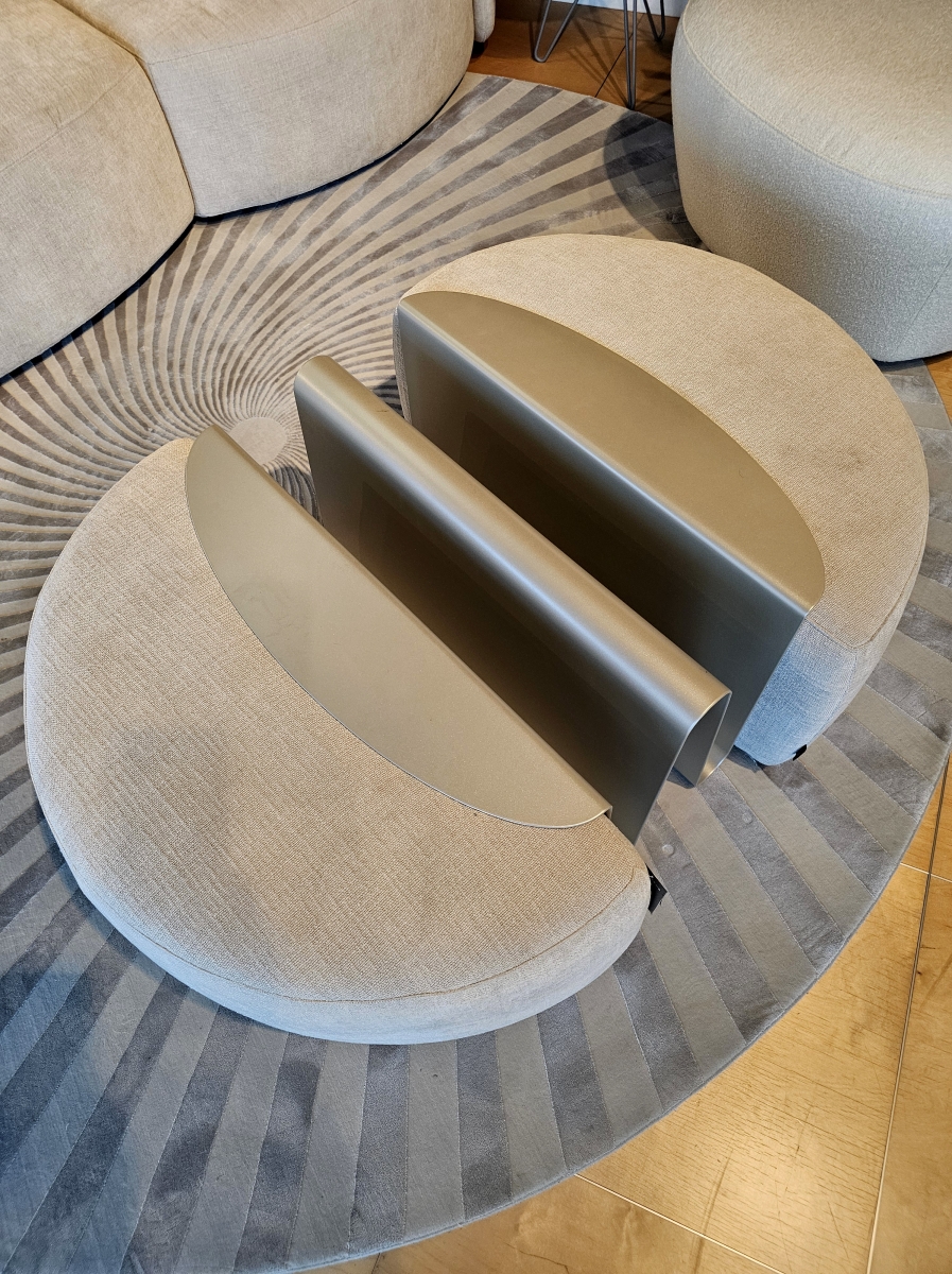 Razstavni eksponat trosed DEEP in tabure WAVE z vstavkom za časopise - kolekcija Natuzzi ITALIA , slovenska oblikovalka Nika Zupanc