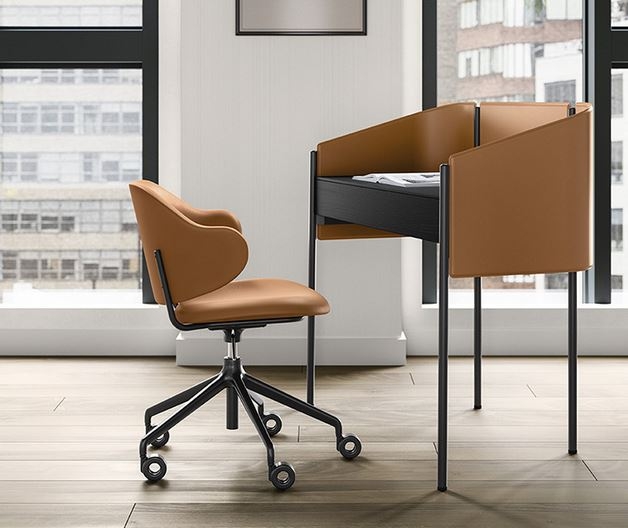Pisalna miza BIBILIO, za domačo pisarno je Iz prevlečene cevaste kovine in oblazinjenih ločilnih plošč v regeneriranem usnju konjak barve. Opremljena je s priročnim predalom pod mizno ploščo in izhodom za kabel. Delo od doma tiho oblikuje prihodnost in imeti pravo mizo doma je najpomembnejše! S svojo elegantno oblogo iz regeneriranega usnja vam bo pisalna miza Biblio pomagala poustvariti vašo lastno udobno pisarno v udobju vašega doma. Z elegantnim kovinskim okvirjem in leseno mizno ploščo s priročnim predalom, je ta pisalna miza nedvomno popolna za vsakogar, ki potrebuje delovno nišo doma.