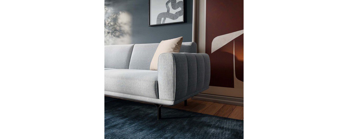 Umetniško oblikovana sedežna garnitura s svojim nenavadnim, vizualno osupljivim dizajnom. Zasnovana je tako, da s svojim elegantnim, ultra modernim slogom naredi vtis iz vseh zornih kotov. Zagotovo bo postala osrednja točka vsakega sodobnega doma. Kovinsko mat črno podnožje podpira celotno osnovo in ji daje lebdeč videz, ki kljubuje gravitaciji. Jasne, čiste linije opredeljujejo poenostavljeno silhueto, medtem ko edinstveno vertikalno prešitje zaznamuje rokonaslone.