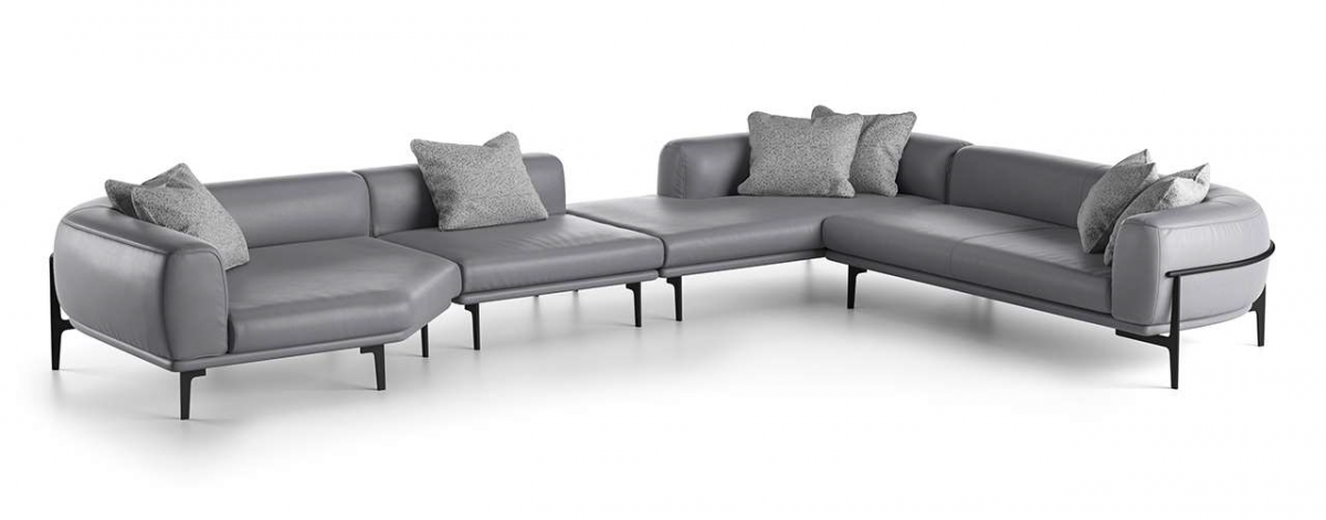 Okrogle in polkrožne silhuete poudarjajo razkošno mehkobo sedežne garniture Oblo.