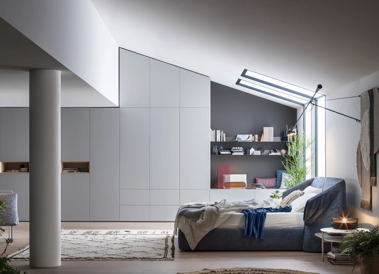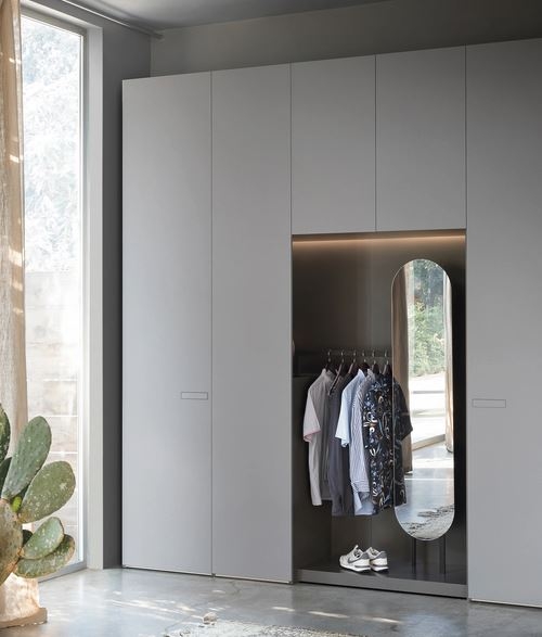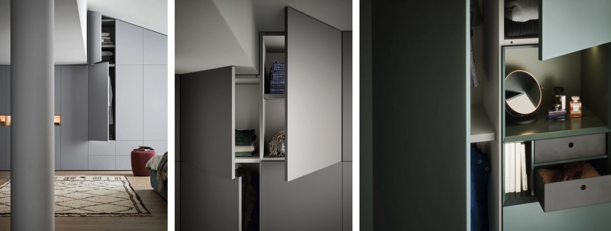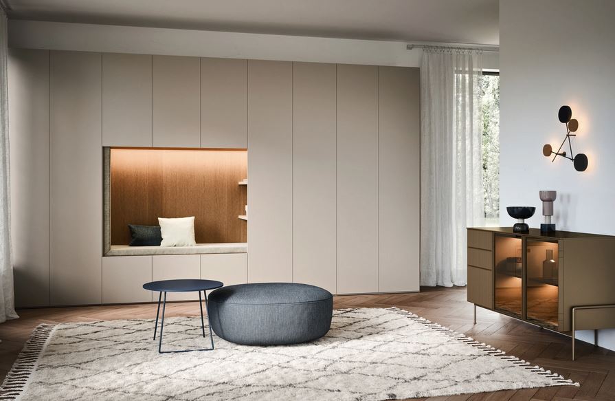 Pohištvo za spalne prostore, kot so garderobne omare s klasičnimi ali drsnimi vrati, tako imenovane walk-in prostore, komode, nočne omarice ter ostale shranjevalne elemente, vam sestavimo po vaši meri. Vsaka kompozicija garderobnih omar in ostalih sestavov je personalizirana in popolnoma prilagojena vašemu prostoru. Pri načrtovanju sestava za vaš spalni interier, vam iz razpoložljivih elementov sestavimo optimalno kompozicijo, pri čemer upoštevamo vaše želje in potrebe. Pohištvo italijanskega proizvajalca Novamobili je izdelano iz visokokakovostnih modulov, iz različnih materialov v številnih barvah in strukturah. Modularni sistemi Novamobili so na voljo za talno ali stensko izvedbo. Sistemi, ki so popolnoma prilagodljivi, so namenjeni shranjevanju in organizaciji bivalnega prostora, na voljo v neskončnih rešitvah.