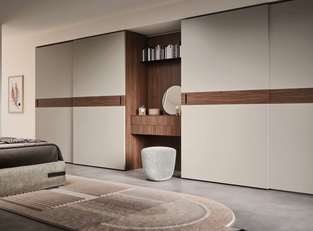 Pohištvo za spalne prostore, kot so garderobne omare s klasičnimi ali drsnimi vrati, tako imenovane walk-in prostore, komode, nočne omarice ter ostale shranjevalne elemente, vam sestavimo po vaši meri. Vsaka kompozicija garderobnih omar in ostalih sestavov je personalizirana in popolnoma prilagojena vašemu prostoru. Pri načrtovanju sestava za vaš spalni interier, vam iz razpoložljivih elementov sestavimo optimalno kompozicijo, pri čemer upoštevamo vaše želje in potrebe. Pohištvo italijanskega proizvajalca Novamobili je izdelano iz visokokakovostnih modulov, iz različnih materialov v številnih barvah in strukturah. Modularni sistemi Novamobili so na voljo za talno ali stensko izvedbo. Sistemi, ki so popolnoma prilagodljivi, so namenjeni shranjevanju in organizaciji bivalnega prostora, na voljo v neskončnih rešitvah.
