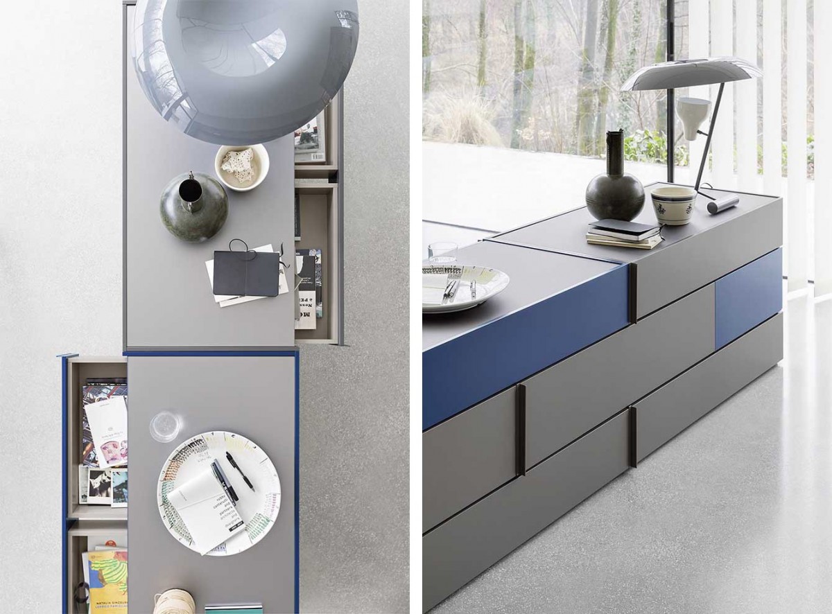 Sistem GIRO - GIRO je modularni sistem predalov, ki jih je mogoče sestaviti v enote, razporejenimi na vseh straneh. Ponuja praktično neomejene možnosti, saj so konstrukcija in fronte na voljo v različnih zaključnih obdelavah in barvah, ki jih je mogoče kombinirati in usklajevati, kar ustvarja prijeten grafični učinek z nizom prekinjenih črt, ki se neprekinjeno sekajo z navpičnimi črtami, poudarjenimi z majhnim kovinskim ročajem. Sistem Giro-Giro je zasnovan kot samostoječa enota za postavitev na sredino sobe – v spalnici, v garderobi ali v dnevni sobi – in je prav tako funkcionalen, če ga postavite ob steno, na noge ali neposredno na tla.