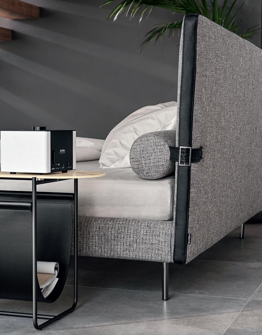 Postelja MIES se ponaša z več osupljivimi lastnostmi. Elegantno, cevasto kovinsko podnožje v črnem niklju ali mat črni barvi in minimalističen obod dajeta postelji zračnost in eleganco. K vzglavni končnici lahko dodate valjasto vzglavno blazino, ki jo poljubno namestite, saj se na vzglavno končnico pritrdi s pomočjo magneta. Naslon za glavo je okrašen z dekorativno obrobo, ki jo lahko izberete v usnju.