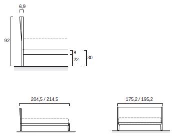 160 x 190 / 200, zunanja dimenzija 204,5 / 214,5 x 175,2, višina 92 cm