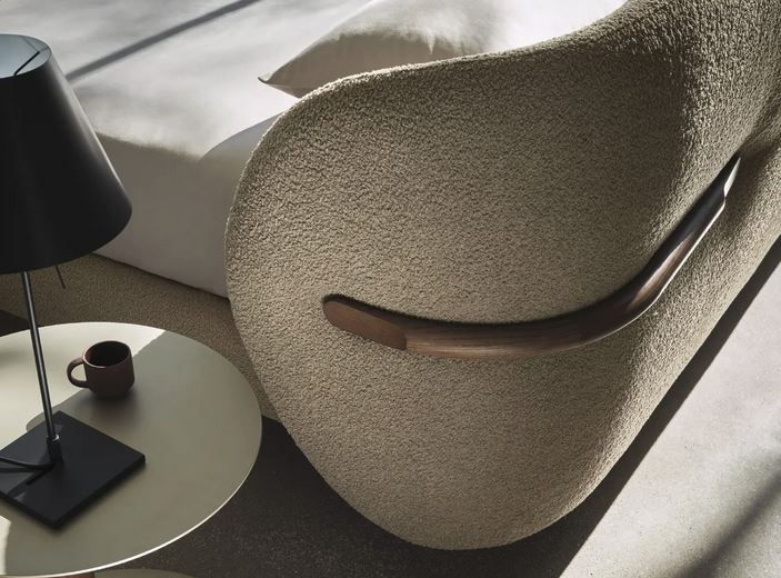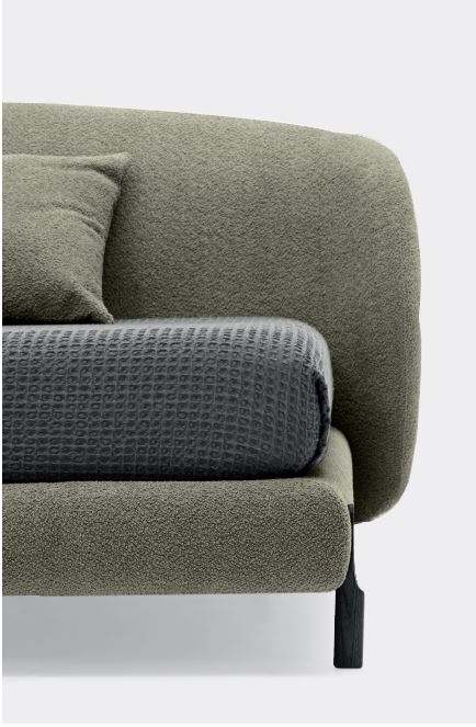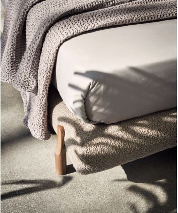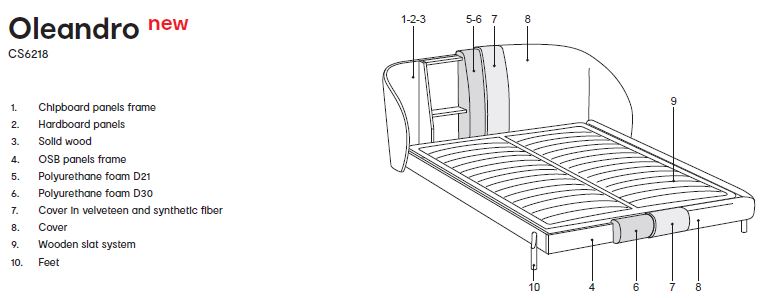 Postelja OLEANDRO izstopa s svojim ovijajočim naslonjalom, ki ga mehko obdaja vodoravno oblazinjenje in je na voljo v različnih vzorcih in materialih. Vzglavna stranica je poudarjena z lesenimi zaključki, ki se ujemajo z nogami. Eleganten pridih tega modela postelje je na koncu lesenega, zaokroženega okvirja naslonjala, ki je mojstrsko obrobljen in na koncih sploščen v konico. Postelja Oleandro ima prefinjen, estetsko privlačen dizajn, zaradi katerega je popolna za postavitev na sredino sobe. Prevleka vzglavja in oboda v tkanini je snemljiva za lažje vzdrževanje.