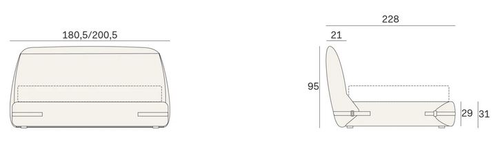 180 x 200, zunanja dimenzija 200,5 x 228, višina 95 cm