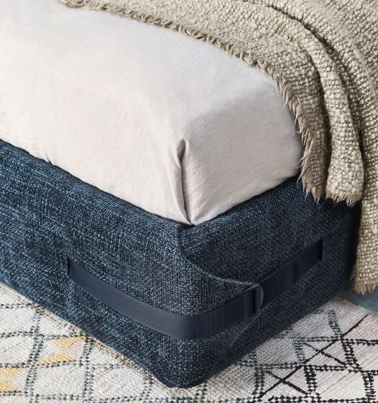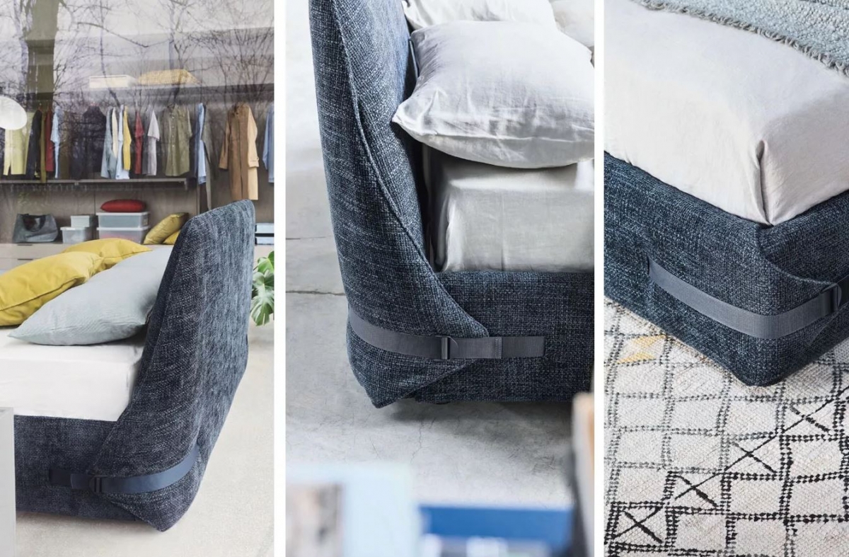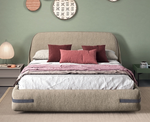 Tape je oblazinjena postelja, katere mehko zaobljena oblika vizualno izraža idejo udobja. Mehkobo vzglavja in posteljnega okvirja poudarjajo pasovi na štirih vogalih, ki stisnejo oblazinjeno oblazinjenje, kot da zadržujejo in podpirajo vzmetnico. Najlonski pasovi so na izbiro v različnih barvah za lažjo kombinacijo oblazinjenja postelje. Na voljo so tudi postelje z dvižnim mehanizmom v dveh izvedbah. Z ročnim dvižnim mehanizmom z dvojno funkcijo v 2 fazah : pod 45° kotom in vodoravno nastanitev za preprosto menjavanje posteljnine na vzmetnici ali električnim dvigom. Podposteljni predal vam nudi optimalno izrabo prostora za shranjevanje. Prevleka vzglavja in oboda v tkanini je snemljiva za lažje vzdrževanje.