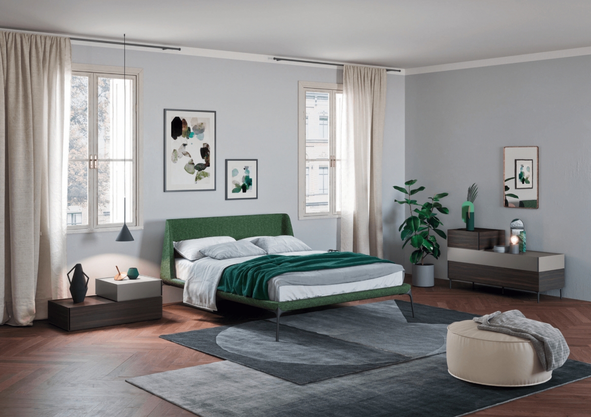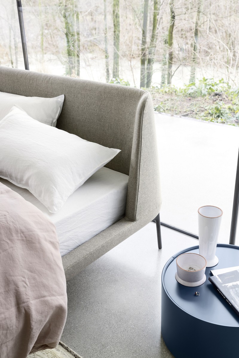 Postelja VELVET deluje lahko in elegantno v odmevu njenih tekočih, vijugastih linij. Njeno obdajajoče in mehko oblazinjeno vzglavje odpira krila in vabi k objemu. Postelja MIES se ponaša z več osupljivimi lastnostmi. Elegantno, kovinsko podnožje in minimalističen obod dajeta postelji zračnost. Vzmetnica se zdi, da visi v zraku, čeprav sloni na rahli, a robustni strukturi, postavljeni na vitke kovinske noge, katere izbirate v različnih kovinskih barvah.