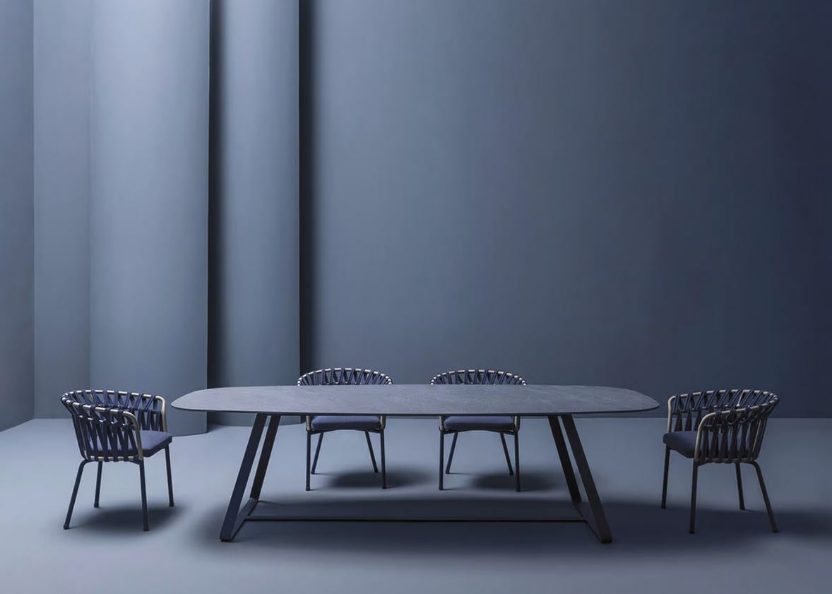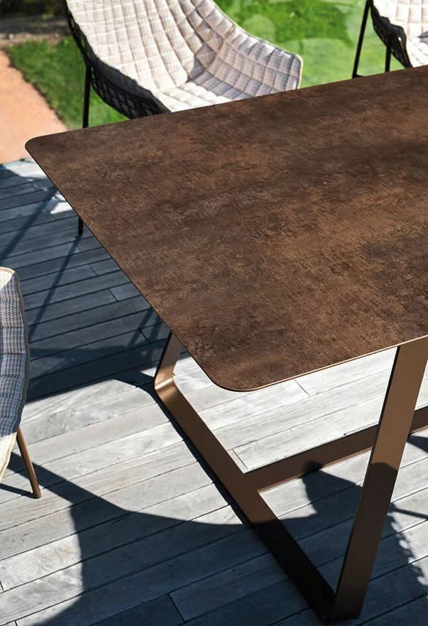 Vlečeno jekleno podnožje zaznamuje mizo Kolonaki z mehkimi in elegantnimi linijami, ki dajejo obliko robustni in vizualno lahki strukturi. Kataforezno barvanje naredi jeklo še posebej odporno proti koroziji zaradi atmosferskih dejavnikov, zlasti v obmorskih območjih. Kolonaki je prefinjena vrtna miza, ki polepša vsak zunanji prostor, od verande domačega vrta do terase restavracije.