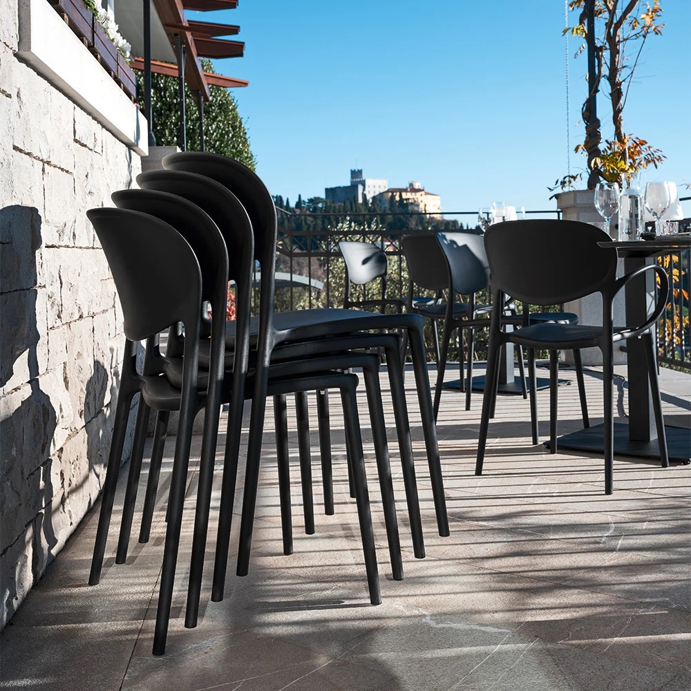 Stol ABBY je bil rojen, da postane ikona, ki združuje preteklost in prihodnost. Vrtni stol Abby ponuja klasičen dizajn, mehkih in zaobljenih oblik, ki jih povezuje sodoben material ; 100 % recikliran polipropilen. Izdelan je s tehniko zračnega brizganja. Ta postopek izdelave zagotavlja izjemno trdnost in tudi zmanjšanje teže izdelka. Stoli se lahko zlagajo en na drugega in s tem zmanjšajo prostor za shrambo. Na voljo je z ali brez rokonaslona ter v pisani paleti barv.