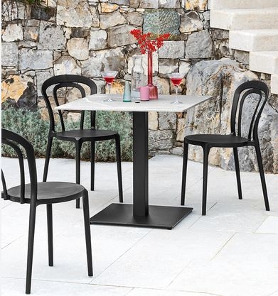 Uporabljeni inovativni materiali in dizajn, ki spominja na enega najbolj klasičnih stolov doslej, naredijo jedilni stol CAFFE idealen za izpolnitev domačega interierja ali prostorov, ki so odprti za javnost, tako v notranjih kot zunanjih prostorih, poleg tega pa ga je mogoče tudi zložiti v višino. Monoblok jedilni stol CAFFE je iz polipropilena, izdelan s tehnologijo zračnega brizganja -Airmoulding, ki zagotavlja lahkotnost in hkrati trdnost.