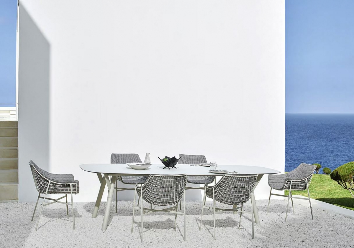 Zasnova, ki odlikuje kolekcijo Summer je posebna kovinska mreža, ki združuje eleganco in udobje v neprekosljivi sintezi, zaradi katere je lahkotnost ena njenih izstopajočih lastnosti. Mrežasta struktura iz prašno barvanega jekla je prevlečena z zaščitno obdelavo C5M, zaradi česar je material izjemno odporen proti koroziji. Prijetno zaobljene krivulje, ki jo oblikuje kovinska mreža, spremlja prešit motiv blazine. Kolekcija Summer Set, ki je kot nalašč za bivalne prostore vrtov, verand in domačih teras, se odlično prilagaja zunanjim prostorom in prinaša svoj prefinjen in sodoben pridih.