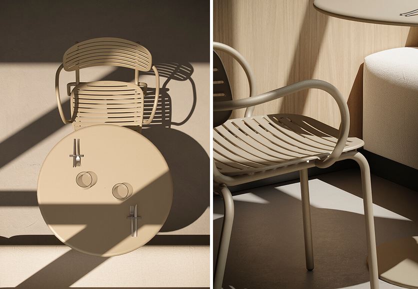 Živahen, barvit in s sodobnim pridihom je stol Mom, ki ga je oblikoval Florent Coirier, prava oda lahkotnosti in svežini. Izdelan je iz pocinkane jeklene pločevine in odporen na vremenske razmere - popoln za stilsko polepšanje zunanjih in notranjih prostorov. Mehke in obdajajoče oblike sedeža in naslonjala zagotavljajo udobje, eleganten grafični učinek naslonjala pa vizualno olajša strukturo, zaradi česar je dinamična in prefinjena. Naslonjalo je na okvir pritrjeno z zakovicami iz nerjavečega jekla, kar zmanjšuje tveganje za korozijo, rjavenje in obrabo. Vsestranska barvna paleta daje stolu Mom mladosten, svež videz, za notranjo različico pa je za sedež in naslonjalo na voljo oblazinjena blazina, pritrjena s praktičnim elastičnim sistemom, ki doda udobje in mehkobo, ne da bi pri tem ogrozil slog. Mom je sedež, ki lahko vsakemu okolju doda osebnost in vitalnost ter vsak družabni trenutek naredi lažji in prijetnejši.