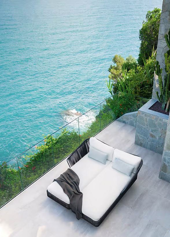 Udoben kot fotelj, sproščujoč kot ležalnik. Na njem lahko sedite ali ležite in uživate v užitku bivanja na prostem na različne načine. Posebno ročno izdelano tkanje, ki je značilno za celotno kolekcijo Tibidabo, najde nov izraz v asimetričnem, zaobljenem naslonjalu, slogovni podrobnosti, zaradi katere je ta kos pohištva edinstven. Enostavno ga je premikati, saj je opremljeno z dvema nogama s kolesi, zato je dinamičen kos pohištva, ki vam omogoča ustvarjanje različnih kompozicij na vrtu, verandi ali ob bazenu.