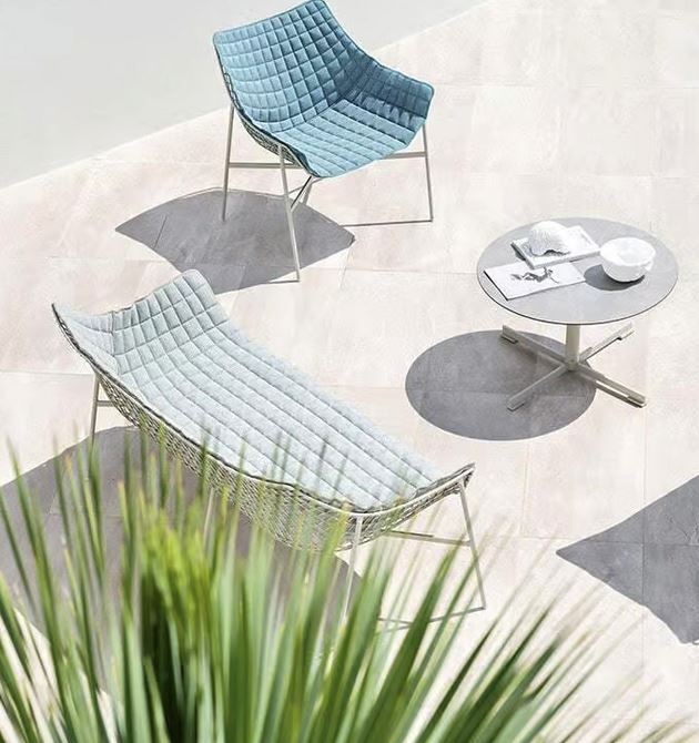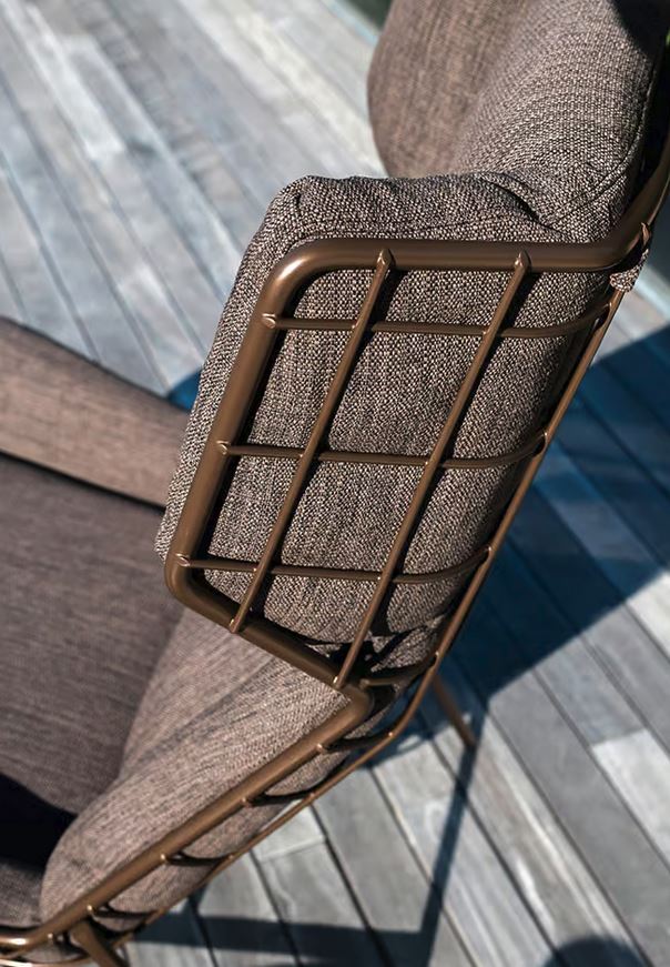 Zasnova, ki odlikuje kolekcijo Summer je posebna kovinska mreža, ki združuje eleganco in udobje v neprekosljivi sintezi, zaradi katere je lahkotnost ena njenih izstopajočih lastnosti. Mrežasta struktura iz prašno barvanega jekla je prevlečena z zaščitno obdelavo C5M, zaradi česar je material izjemno odporen proti koroziji. Prijetno zaobljene krivulje, ki jo oblikuje kovinska mreža, spremlja prešit motiv blazine. Kolekcija Summer Set, ki je kot nalašč za bivalne prostore vrtov, verand in domačih teras, se odlično prilagaja zunanjim prostorom in prinaša svoj prefinjen in sodoben pridih.