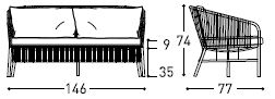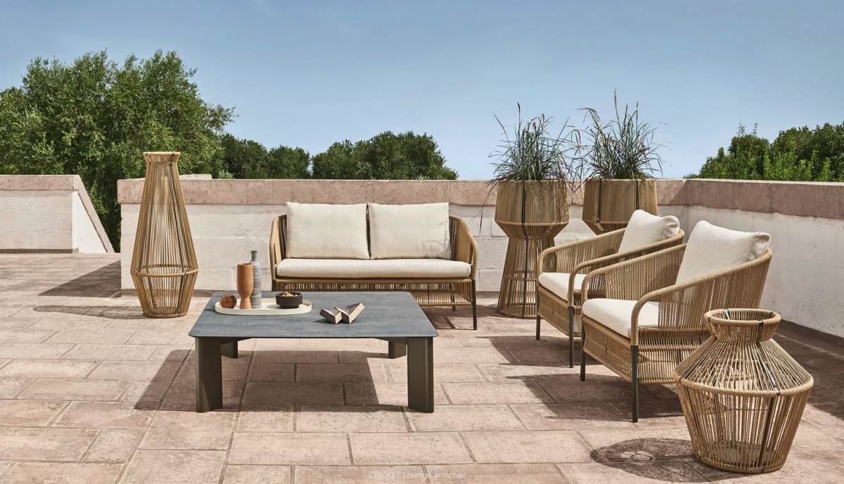 Elegantno ročno izdelano tkanje vrvi ovija ogrodje, ki ga navdihujejo barve in oblike narave. Prostoren in udoben dvosed Cricket ima aluminijasto konstrukcijo in mehke blazine, zaradi katerih je še posebej prijeten. Idealen je za okrasitev bivalnega prostora na prostem, tako stanovanjskega kot poslovnega, saj ga odlikuje vsestranskost sloga in enostavnost, s katero se kombinira z drugim pohištvom iz istoimenske kolekcije.