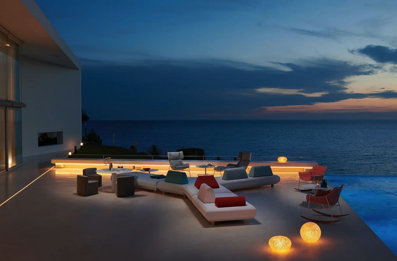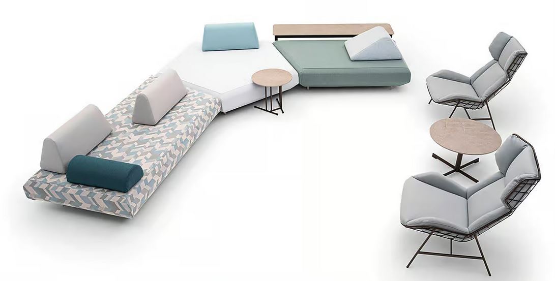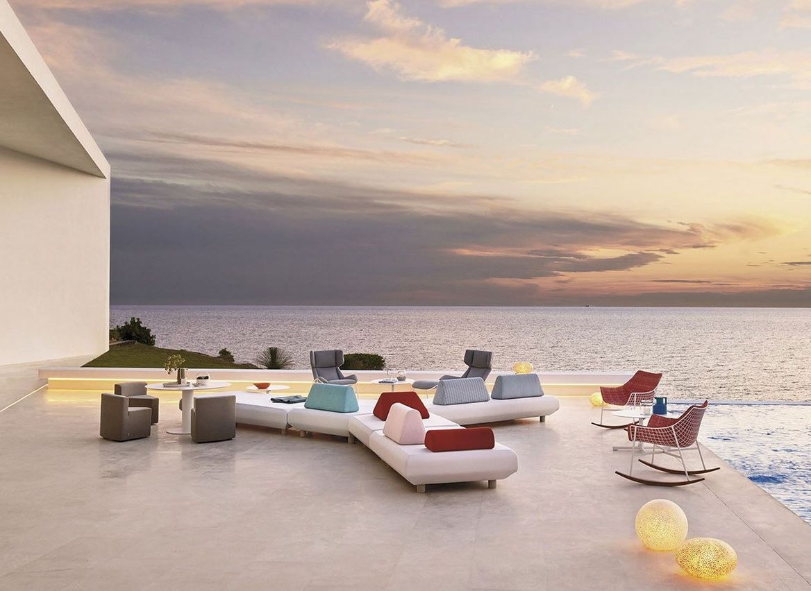 Za modularno sedežno garnituro Bento je značilna preprosta zasnova, na kateri nežno ležijo barvne blazine, ki so nameščene na garnituri kot mehki oblaki in služijo kot naslonjalo in naslon za roke - odvisno od sestava. Z dodajanjem novih modulov ali njihovim premikanjem se ustvarijo različne postavitve, s katerimi lahko zunanji prostor prilagodite po želji. Nešteto možnosti kombinacij vam omogoča, da ustvarite široko paleto sprostitvenih otokov, na vrtu, terasi, verandi, ob bazenu, v dnevnih prostorih in razstavnih prostorih.