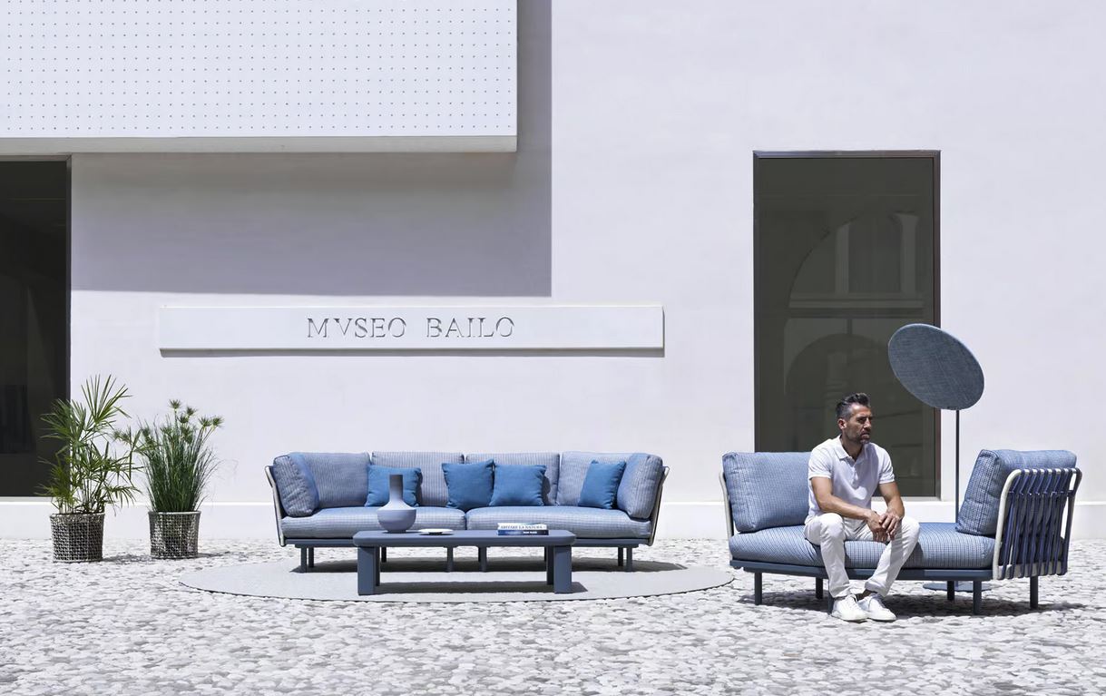 Eleganca kolekcije Emma Cross, ki jo je zasnovala arhitektka Monica Armani, se širi proti novim oblikam sprostitve z modularnim kavčem za zunanje prostore. Ta kos pohištva, izdelan iz prašno barvane aluminijaste konstrukcije in širokega sedeža iz pene Dryfeel®, oblazinjenega z vodoodbojno tkanino, zaradi česar je popoln spremljevalec za najzahtevnejše zunanje prostore.